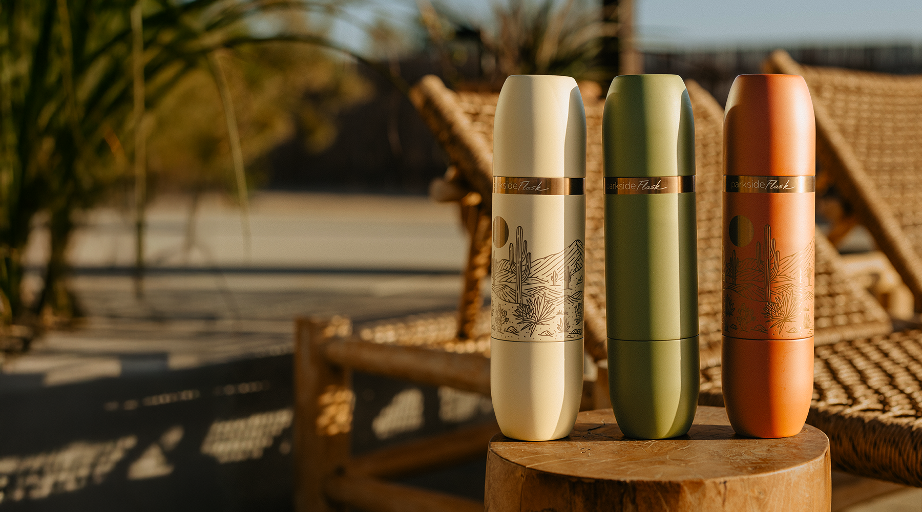 "It's still the Parkside Flask you know. A full bottle, chilled for hours, tumblers built right in. The Mojave Edition has all the same function, but in a brand new feeling." —Whit, Co-Founder